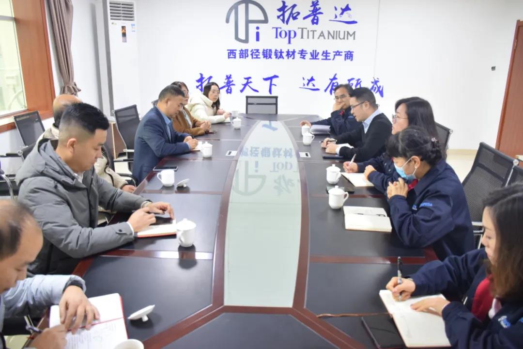 12月的头一天一早,金山钛业董事长马宪斌带领金山高管团队来到拓普达钛业就技术创新进行交流。马宪斌一行首先来到生产车间参观了径锻生产全流程,公司副总何无介绍了公司生产经营情况和径锻的工艺流程及特点。接着在公司三楼会议室就技术创新,双方进行了深入专题交流。