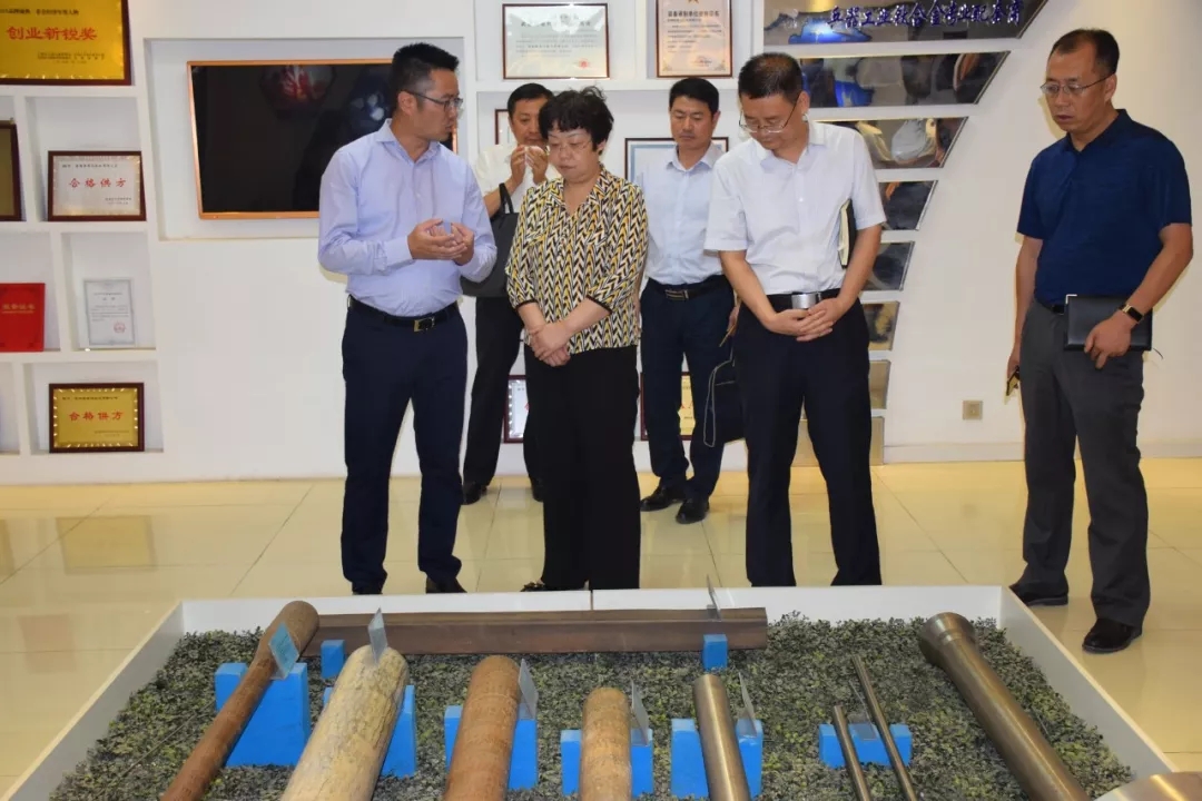 在公司产品展示厅,刘市长仔细观看了展品,公司几款核心专利产品引起刘市长极大关注,刘市长从产品的前景、市场占有率、性价比、顾客满意度等进行了详细了解。