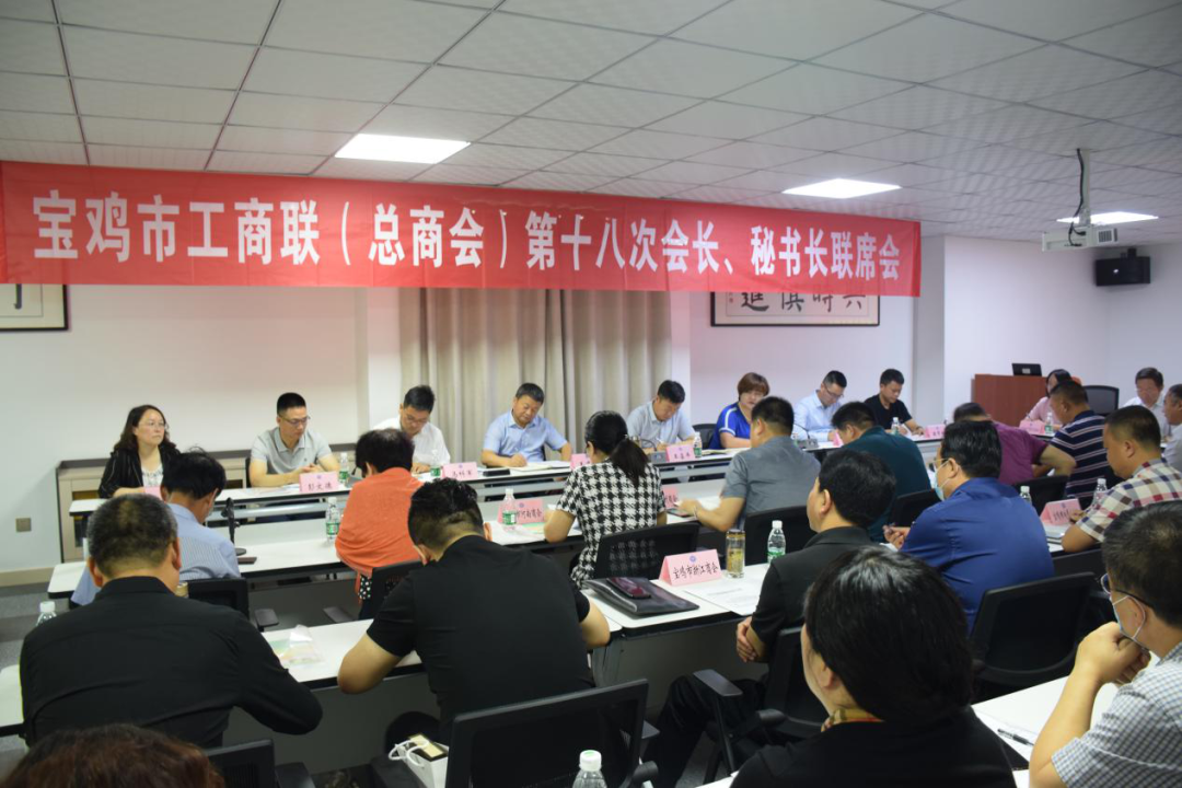 宝鸡市工商联第十八次会长、秘书长联席会议7月16日在拓普达钛业多媒体中心隆重召开,宝鸡市29个商会会长、秘书长,以及政府相关部门负责人80余人参加本次会议,宝鸡市工商联主席王喜平出席会议并讲话。